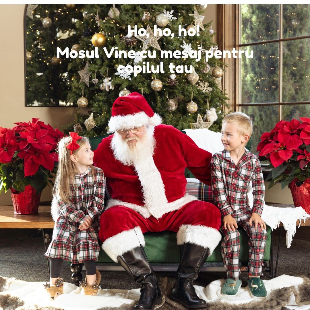 Moș Crăciun va spune numele copilului, va menționa realizările lui din acest an și va vorbi despre hobby-urile lui preferate!